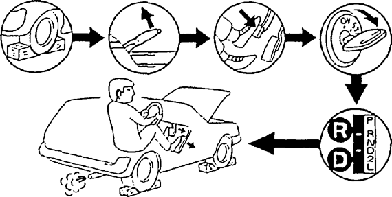 Перед началом движения всегда следует нажать на педаль тормоза, затем перевести рычаг выбора диапазона в нужную позицию, не нажимая при этом на педаль управления дроссельной заслонкой.